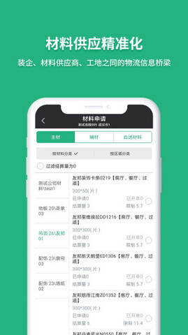 1.材料供应精确,在客户列表材料详细信息中,精细划分不同类型的材料栏信息。