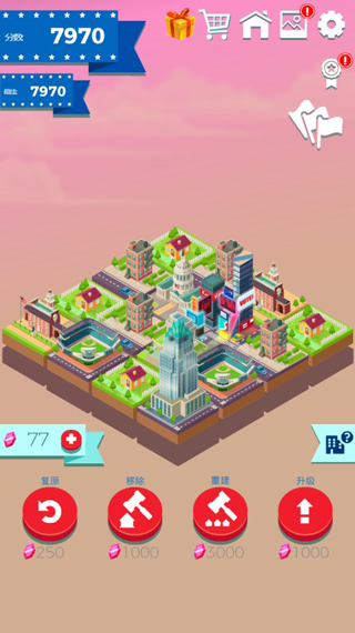 合到20根本停不下来是一款建设城市的模拟经营的游戏。在保留2048年结构的基础上,增加了英国、美国和俄罗斯的标志性建筑作为艺术家。使游戏比2048年更有吸引力,3D建模取代了传统数字2D平面构建给玩家带来视觉享受。合到20根本停不下来游戏中当你没有移动网格时,可以使用道具来完成下一个建筑,这减少了玩家重新开始的情况。此外,游戏还增加了建筑图集和成就功能,不仅可以帮助玩家了解建筑的顺序,还可以让玩家获得更多的奖励!