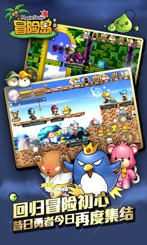 冒险岛手游是一款超人气横版动作冒险手机游戏,完美延续Q萌画面、丰富剧情等各种游戏玩法和其他经典特征。同时,游戏提供了全新的情节、两种操作模式:虚拟键盘和操纵杆、先进的即时网络团队功能。冒险岛手游中还有公会、社交、全面优化培养等个性化玩法。结合移动终端的便捷性,将其游戏质量提升到了一个新的高度。可以说这部作品无论是游戏性的还是操作性、画面感、优化等方面都有突破。这是经典游戏IP回归,熟悉操作手感来了!
