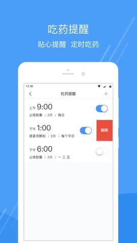 提醒用户服药,为多种药物服用者提供智慧记忆,如:物名称、剂量、服药时间、服药注意事项等,避免因药物漏服错服而造成的损害。