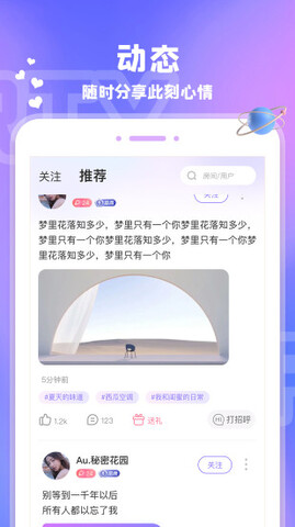 1.动态广场:随时随地分享心情和动态,丰富生活,帮助你结识有趣的灵魂;