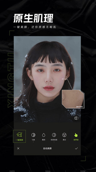 1.质感肌肤一键美容,一键操作,具有高级质感肌肤。自然细腻不假白,容易修复好肤色。