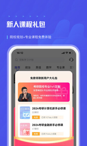研途考研app是专注于考研行业的上课服务平台,为学生提供众多服务,涵盖了丰富的学习资源,针对各种专业进行课程辅导。并且还有众多名师课程供你选择,考研党可以根据课程体系内容、用户的评价,来选择适合自己的考研课程。研途考研app还为学生提供疑问解答,海量刷题题库,学习计划定制,考研资讯等全套考研规划和指导,通过自身强大的师资力量和教学资源,致力于为广大用户提供个性化、互动化、智能化的卓越在线学习体验。