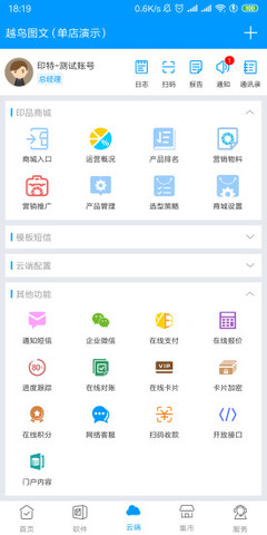2.云端:云端的相关配置、云端账务、印刷商城等功能。