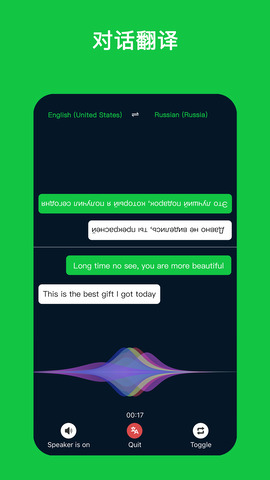 •对话性翻译:自动识别语言,实时翻译,线下聊天更容易。