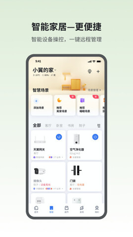 小翼管家app是中国电信为智能家庭、智能社区和数字农村用户推出的软件,提供数字生活的整体解决方案。通过小翼管家监控,用户可以有效管理家庭网络,玩转天翼智能设备,丰富的智能应用和生活服务等着你去探索。小翼管家app集远近场控制于一体,涵盖天一智能扬声器、智能家居、天翼网关等产品。软件还具有控制家庭网络配置、控制机顶盒和业务、控制智能外设、控制第三方应用等功能,让你轻松控制手机上的各种智能设备,让智能充满你的生活,为你节省时间和精力。