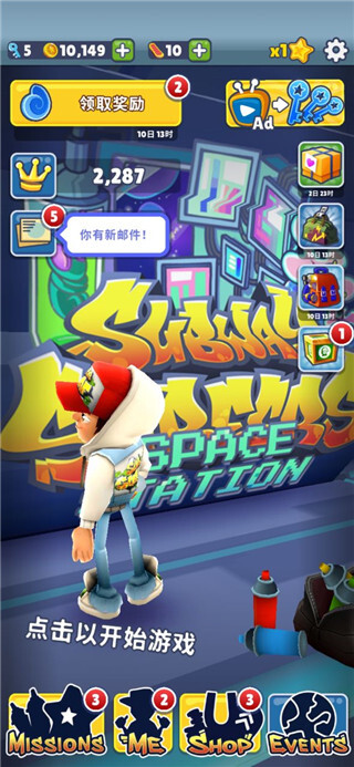 地铁跑酷空间站版本是经典的跑酷游戏,整体画面华丽,立体造型和丰富场景具有强烈的美式漫画风格,色彩丰富。同时,地铁跑酷空间站版本游戏中的人物形象生动,可爱的卡通形象令人印象深刻,游戏的主角是一个热血的年轻人,他非常喜欢在火车站涂鸦,但这种行为肯定会被火车站工作人员唾弃。所以,在地铁跑酷空间站版本游戏中,玩家会被工作人员穷追猛打,当然,不仅有人的追击,还有火车和栅栏的阻碍。总之,玩法是一样的。感兴趣的玩家,就快来下载游戏体验吧!