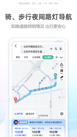 下载高德地图2023年最新版就能得到一款非常好用的手机地图服务应用软件,官方推出的最新版本地图应用,为用户更新了最新的导航路线,智能出行规划路线,是出行必备的手机地图软件。下载高德地图2023年最新版功能强大,免费易用,支持打车功能,更快的一步出租车,代驾百城上线,全网比价,随叫随到。还有一站式夜间路灯导航,了解所有照明情况。让出行更安全,收集所有照片选点,根据照片位置轻松定点秒打卡,在线酒店特价预订!
