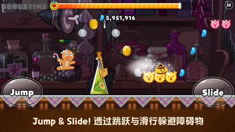 1.这个跑酷逃生游戏非常有趣,玩家可以在这里控制可爱的姜饼人进行跑酷。