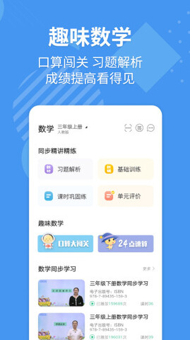 E英语宝app拥有大量免费的英语教材,有学生版和教师版,从听、说、读、写四大部分着手,与小学生各个年级特别是三年级四年级的教材同步,并有语音测评、单词听写、听力训练和趣味练习等多样化的练习与测试,帮助孩子打好基础,轻松学习知识。E英语宝app还有语文。数学等学习内容,多样化帮助学生学习,提高学习效率。