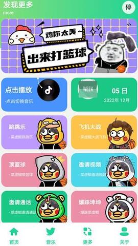 1.语音包,坤坤鬼畜音乐随时更新,成为坤坤的守护者。