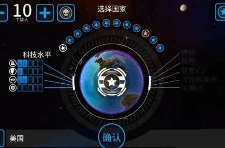 2.不同的军事技术水平、武器储量、领土大小和位置将决定游戏的难度。