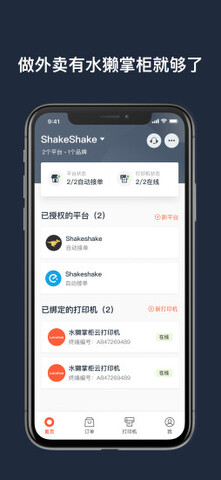 前后台不用跑,多站打印完美解决问题,掌柜帮助商家自动接单全平台。