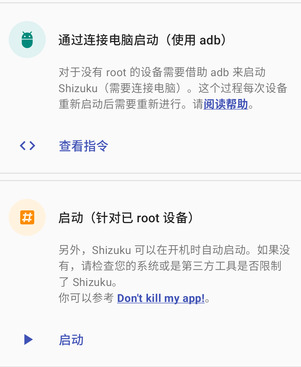 2、未root设备:按照Shizukuapp中的指导,通过adb启动服务。