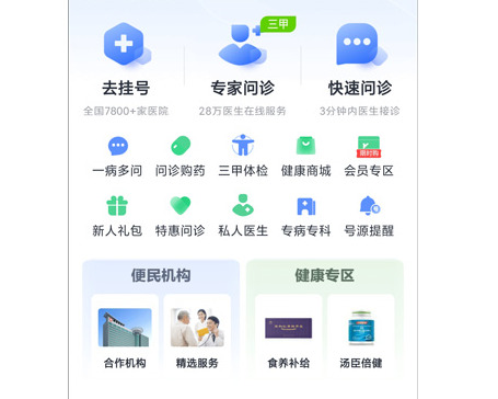 软件主要功能就是给广大用户提供医院挂号,在线看病,送药到家,十分方便。