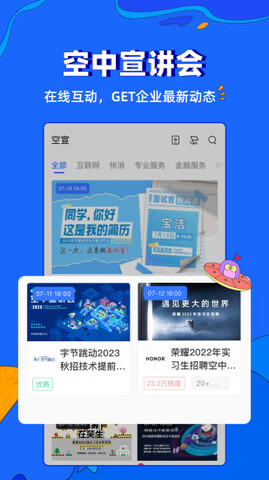 3.大厂空中宣传,HR实时在线互动,企业校招信息有深刻的了解,帮助加入自己喜欢的企业。