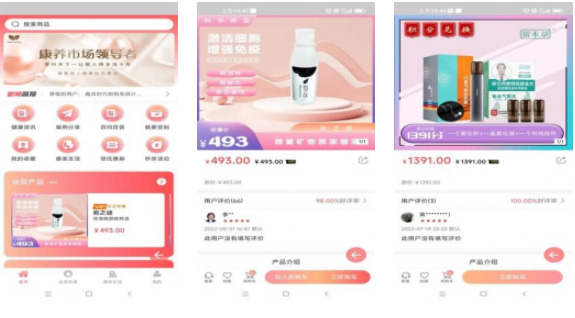 软件可以为用户提供丰富的健康商品,用户可以随时通过手机轻松购物。
