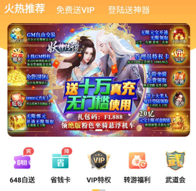 6.【BT福利】送满级VIP、无限元宝,GM特权,1000%变态返利。