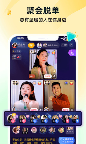 2、多人语音直播间,可参与围观,群聊互嗨,避免尴尬聊!