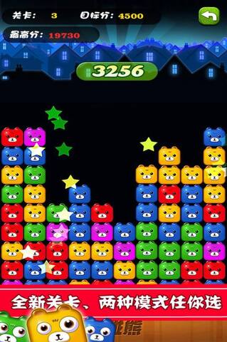 1.就像消消乐一样,两个或两个以上的熊就可以消除,单指就可操作。
