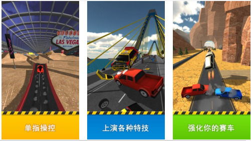3.实现更困难的赛车绝技并获得更多奖品,滑行得越远,粉碎的障碍就越多。