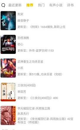 2.包含很多连载的书籍,实时的为你进行更新,最新的内容抢先试听。