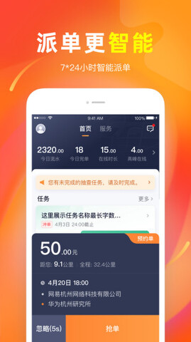 大量订单7*24小时智能送单,不愁无单抢,送单无倾斜,单单公平。
