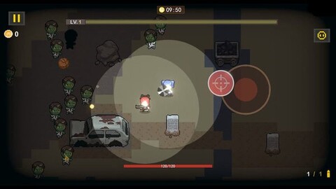2、使用虚拟摇杆进行操作,控制角色的行走和射击。