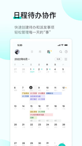 2.合作过程支持各种合作小工具,预约会议,征集时间,创建待办事项,记录过程任务的每一个结论,不再需要单独拉群。