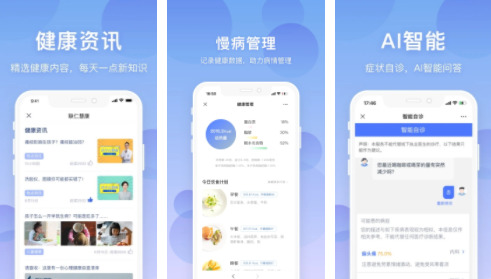 3.全面健康管理,慢性病管理,智能自诊,智能问答,贴心。
