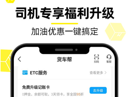 3.ETC服务,办理货车帮ETC,部分省份可享有高速公路费超低折扣,省时省钱不费事。