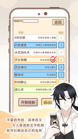 3.随机的分配不同的属性,达成各种结局,给你带来不同的结果。