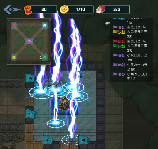 2、升级自己的主城和小兵,生产更多的兵力保护城市;