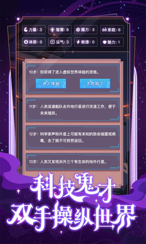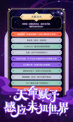 体验多种异世人生,并且通过不同的天赋属性来丰富异世的冒险旅程。