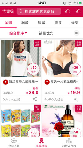 4.优惠券优选:专业买家选钱,专业砍价,超高超值宝贝,等你任性!