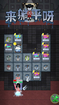 躺平发育正版是一款2D塔防游戏。你需要在游戏中面对选择:是坚持抵抗到底,还是选择躺平发育?下载安装躺平发育正版后全新的玩法,在宿舍里躺在床上睡觉即可赚取金币。你需要寻找适合自己的宿舍来躲避鬼魂,并发展经济建造炮台,然后逐渐安排道具和升级,用炮台来抵御猛鬼们的攻击。只有将鬼击败或者抵御到天亮,才能获得游戏的胜利!