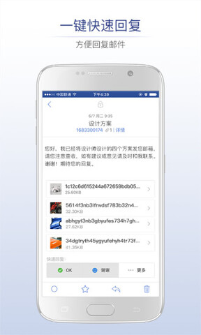 3.APP特设置的快速回复功能,让用户在忙碌的时候及时反馈接收到的邮件,保证您的信息不间断。