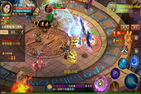2.玩家可以在炫酷的战斗中随意释放自己惊天华丽的技能招式,全屏技能爆炸,震撼战斗快感。