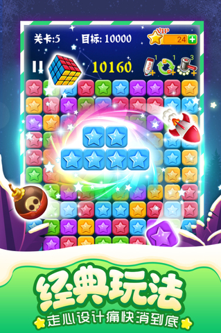 3.经典玩法:单击两个或两个以上的幸运星即可消除,走心的游戏设计,无尽的关卡模式,下载安装后,让玩家快乐长存。