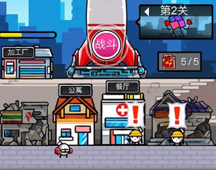 火箭到达战场开始战斗,热血细胞有两个红色和蓝色按钮,红色按钮可以拳击敌人;蓝色按钮使飞毛腿踢细菌。