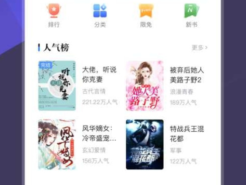3.提供排行、分类、限免、新书板块等分类,为阅读者提供海量小说阅读,每天还有各种热门小说观看。