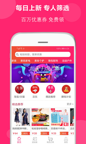 软件与大型电商合作,专门为用户挖掘那些一般人不知道的优惠券,在这里,件件商品都是优惠价格卖出,全场九块九就包邮。