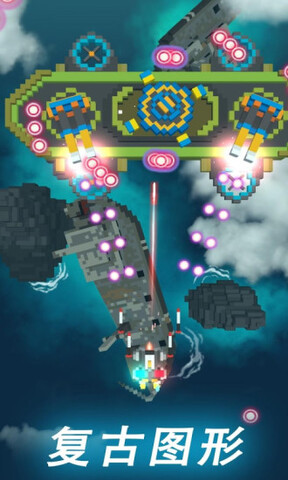 航甲战机的画面采用了复古感性时尚的3D像素风格,让玩家沉浸在别具一格的游戏氛围中。