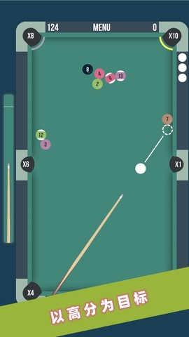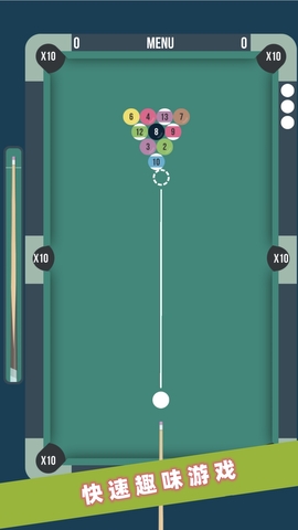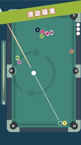 2.玩家可通过滑动屏幕来控制杆子,使桌球撞击到目标球。