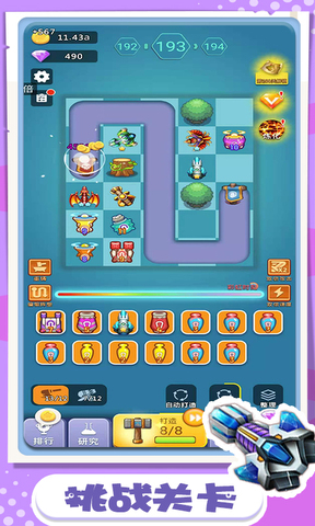 4、通过突破障碍获得后续高级材料,不断升级R&D炮台,提升炮台威力。