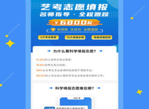 艺愿星app是一款正规可靠的艺术生志愿填报软件,涵盖美术、音乐、舞蹈、表演等多个艺术类别的院校信息,用户可根据自己的兴趣爱好、专业能力和报考要求等条件自由选择院校,并进行比较、筛选等操作。艺愿星app还提供准确的录取概率分析,让用户可以轻松填报艺考志愿。有需要就快来下载软件体验吧!