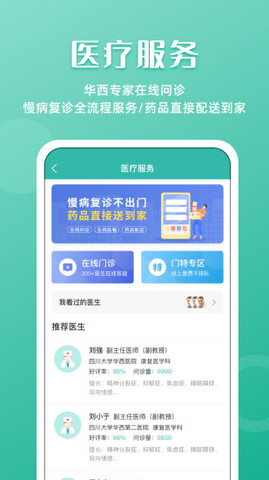 2、慢性病服务:华西团队提供定制的专科诊疗服务及长期健康管理方案。