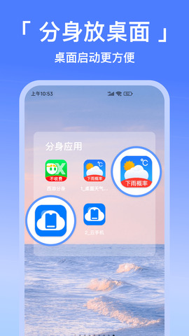 悟空分身免费版app微信多开双开助手,集零收费功能、官方正版微信虚拟化启动、稳定无标题、桌面快捷方式等功能于一体,实现一部手机、两个微信甚至多个微信同时在线。下载一键实现微信双开、微信多开、微信多开等功能,实现微信分体版、微信苹果版、双微信、微信2等功能。