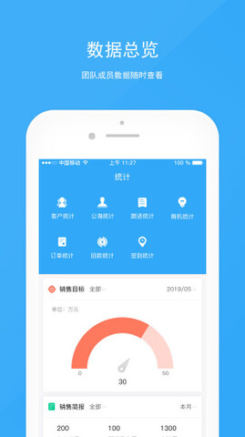 2、实时为您提供销售目标设置,跟踪销售数据记录。