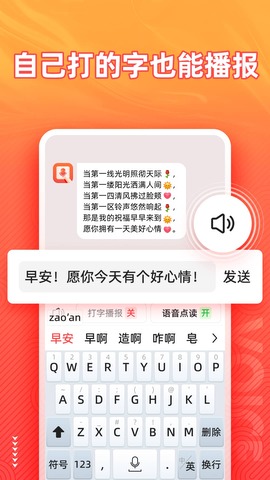2、语音自动转换:轻轻一点,就会迅速转换成语音播放,说得多快就打得多快。